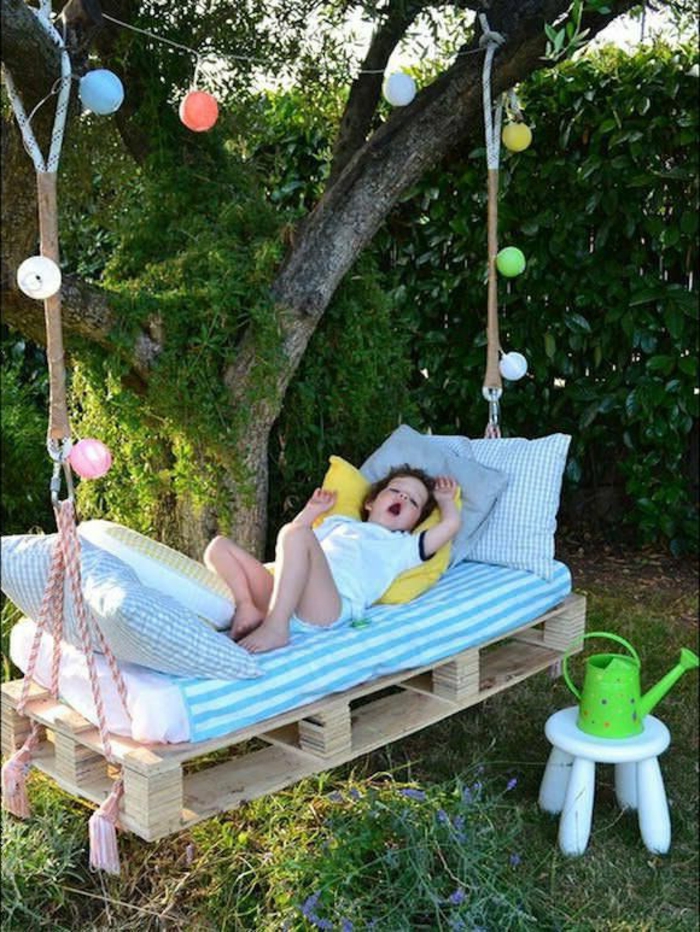 Wunderschönes diy bett im kinderzimmer.